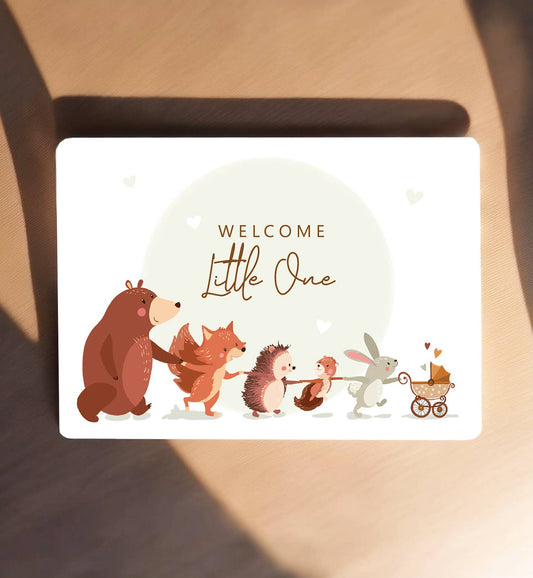 Kort tillykke fødsel skovdyr sødt postkort